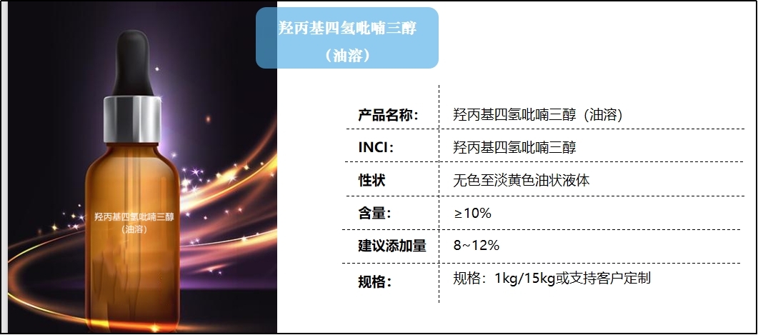 The oil soluble structure enhances the residence time of hydroxypropyl tetrahydropyran triol on the skin surface, reducing degradation caused by skin metabolism or external environmental factors such as ultraviolet radiation.